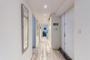 Guests benefit from private entrance access to the apartment which also features safety measures like smoke detectors and carbon monoxide detector alongside fire extinguishers in the unit itself. A lift provides upper floor access directly to the room making arrivals convenient. Entertainment options include a flat-screen TV offering cable channels plus streaming services supported by WiFi coverage available throughout all areas.