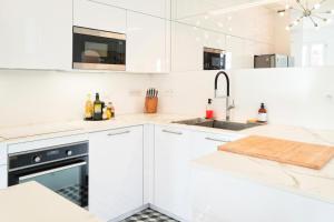 All’interno dell’alloggio gli ospiti troveranno due letti distribuiti nelle due camere da letto accompagnate da un bagno privato. La cucina completa include frigorifero, lavastoviglie, forno e microonde arricchiti da servizi per tè e caffè insieme al tostapane e alla macchina per il caffè. Ulteriori comfort comprendono lavatrice, asciugatrice per i vestiti e attrezzature per stirare composte da ferro e asse da stiro.