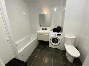 Im Inneren des Apartments steht den Gästen ein Schlafzimmer mit einem Bett sowie ein eigenes Badezimmer für zusätzlichen Komfort und Privatsphäre zur Verfügung. Die voll ausgestattete Küche verfügt über moderne Geräte wie Backofen, Mikrowelle, Kühlschrank, Geschirrspüler, Kaffeemaschine und Toaster sowie Tee- und Kaffeezubereitungsmöglichkeiten. Zusätzliche Annehmlichkeiten umfassen Handtücher, Bettwäsche und eine Waschmaschine.