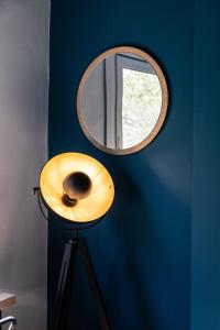 À l’intérieur, les hôtes disposent d’un coin cuisine entièrement équipé avec plaque de cuisson, réfrigérateur, micro-ondes, cafetière, grille-pain ainsi que tous les ustensiles nécessaires pour préparer leurs repas en toute simplicité durant leur séjour. Le salon présente un sol mêlant parquet et carrelage/marbre ainsi qu’un canapé convertible offrant une couchette supplémentaire si besoin. La salle de bains comporte une douche équipée d’un sèche-cheveux, des articles de toilette tels que shampooing sont fournis pour plus de confort.