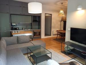 Apartmán má dvě ložnice s dvěma postelemi a plně vybavený kuchyňský kout s troubou, varnou deskou, mikrovlnnou troubou, myčkou nádobí, lednicí, toustovačem, kávovarem i čajovým servisem. Obývací část disponuje televizí s plochou obrazovkou se streamovacími službami a posezením. Koupelny mají sprchové kouty bez vany plus samostatné WC, pro pohodlí jsou k dispozici ručníky a ložní prádlo.