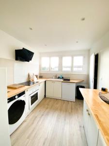 Die Unterkunft umfasst ein Einzelzimmer mit Doppelbett und einem Arbeitstisch für zusätzlichen Komfort. Gästen steht eine voll ausgestattete Küche zur Verfügung, die über Backofen, Herdplatte, Mikrowelle, Geschirrspüler, Kühlschrank sowie grundlegendes Kochgeschirr verfügt, zudem gibt es Tee- und Kaffeezubereitungsmöglichkeiten sowie einen Esstisch. Der Wohnbereich ist mit Parkettboden und Heizung ausgestattet und bietet eine Sitzecke mit Flachbildfernseher und Sofa, Bügelmöglichkeiten mit Bügeleisen und Bügelbrett sind ebenfalls vorhanden.