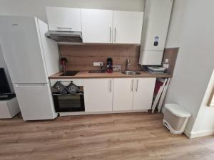 Die voll ausgestattete Küche beinhaltet Backofen, Herdplatte, Kühlschrank, Kaffeemaschine, Wasserkocher, Mikrowelle sowie Geschirr und einen Esstisch zur Mahlzeitenzubereitung. Weitere Annehmlichkeiten umfassen Waschmaschine, Rauchmelder, Flachbildfernseher und Steckdosen am Bett, Internetzugang ist in der gesamten Unterkunft vorhanden. Der Zugang erfolgt ausschließlich über Treppen.
