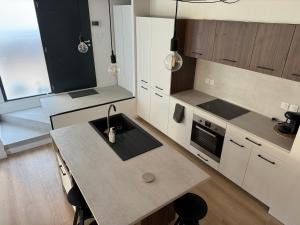 W klimatyzowanym wnętrzu do dyspozycji gości jest w pełni wyposażony aneks kuchenny z piekarnikiem, płytą grzewczą, lodówką, zmywarką, mikrofalówką, ekspresem do kawy, czajnikiem elektrycznym oraz niezbędnymi naczyniami i stołem jadalnym. Apartament zapewnia pościel i ręczniki oraz garderobę z miejscem na ubrania i ogrzewanie. Dodatkowe udogodnienia to pralka i biurko do pracy.
