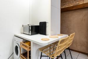 Inside the apartment, guests will find two beds along with a kitchenette fully equipped with a stovetop, refrigerator, microwave, toaster, coffee machine and kitchenware for convenient meal preparation. The space includes ironing facilities such as an iron and ironing board plus a washing machine to assist longer stays. A flat-screen TV featuring cable channels complements the seating area where visitors can relax after exploring the city.