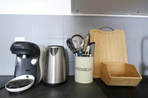 El alojamiento incluye un dormitorio con una cama, una cocina americana completamente equipada con nevera, lavavajillas, horno, microondas, tostadora, cafetera y hervidor eléctrico. El baño dispone de bañera junto con artículos de aseo como champú. Entre las comodidades adicionales en la habitación se incluyen toallas, ropa de cama, plancha con tabla para planchar, calefacción, lavadora con tendedero así como un escritorio para mayor comodidad.