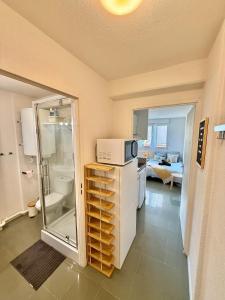 Accommodation features one bedroom with one bed, alongside a private bathroom equipped with a shower and body soap. The fully equipped kitchen contains a stovetop, microwave, refrigerator, coffee machine and all necessary kitchenware as well as a dining table for convenient meal preparation and enjoyment. Additional comforts include heating, towels, bed linen, seating area and wardrobe space.