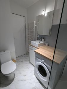 Cet appartement comprend une chambre équipée d’un lit ainsi qu’un coin cuisine entièrement aménagé, idéal pour préparer vos repas. Les voyageurs apprécieront la présence d’un lave-linge et du chauffage pour leur confort durant le séjour. Le salon dispose quant à lui d’une télévision écran plat pour les moments de détente, tandis que la terrasse extérieure offre un espace supplémentaire propice au repos.