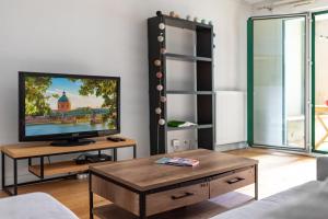 Die Unterkunft umfasst ein geräumiges Apartment mit zwei Schlafzimmern und insgesamt drei Betten. Den Gästen stehen moderne Annehmlichkeiten wie Heizung, Parkettboden, Bügeleisen, Wäscheständer sowie Handtücher und Bettwäsche zur Verfügung. Der Wohnbereich ist mit einem Sofa und Sitzgelegenheiten zum Entspannen ausgestattet.