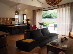 Cette villa d’une chambre comprend deux lits et trois salles de bains équipées de douches. Les hôtes peuvent profiter d’un coin cuisine équipé avec plaque de cuisson, four, lave-vaisselle, réfrigérateur, machine à café, bouilloire électrique, grille-pain ainsi que des ustensiles de cuisine avec thé et café. En plus de la cheminée et du coin salon avec vue sur le jardin situés dans la villa figurent un fer avec planche à repasser, un canapé, une armoire/penderie ainsi que la disponibilité d’un lit bébé ou berceau , pour le confort sont également fournis oreillers sans plumes ainsi que serviettes et linge de lit.
